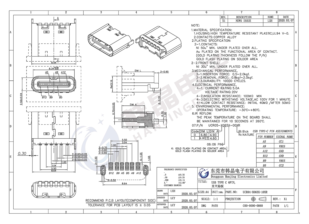 絕緣體材料: LCP,UL94V-0;COL0R;BLACK