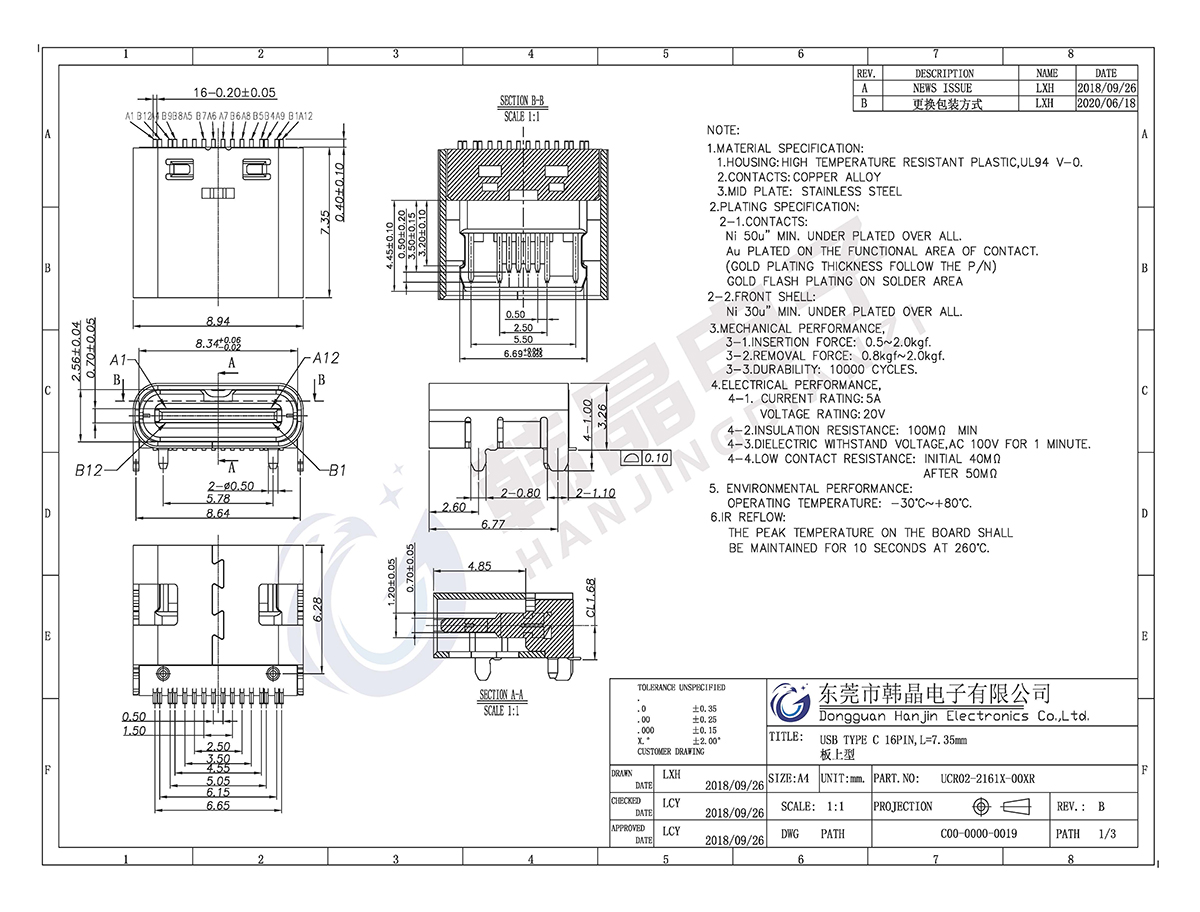 絕緣體材料: LCP,UL94V-0;COL0R;BLACK