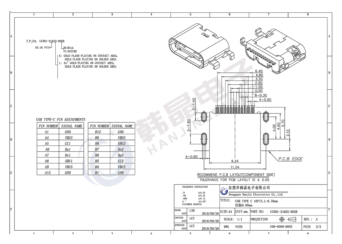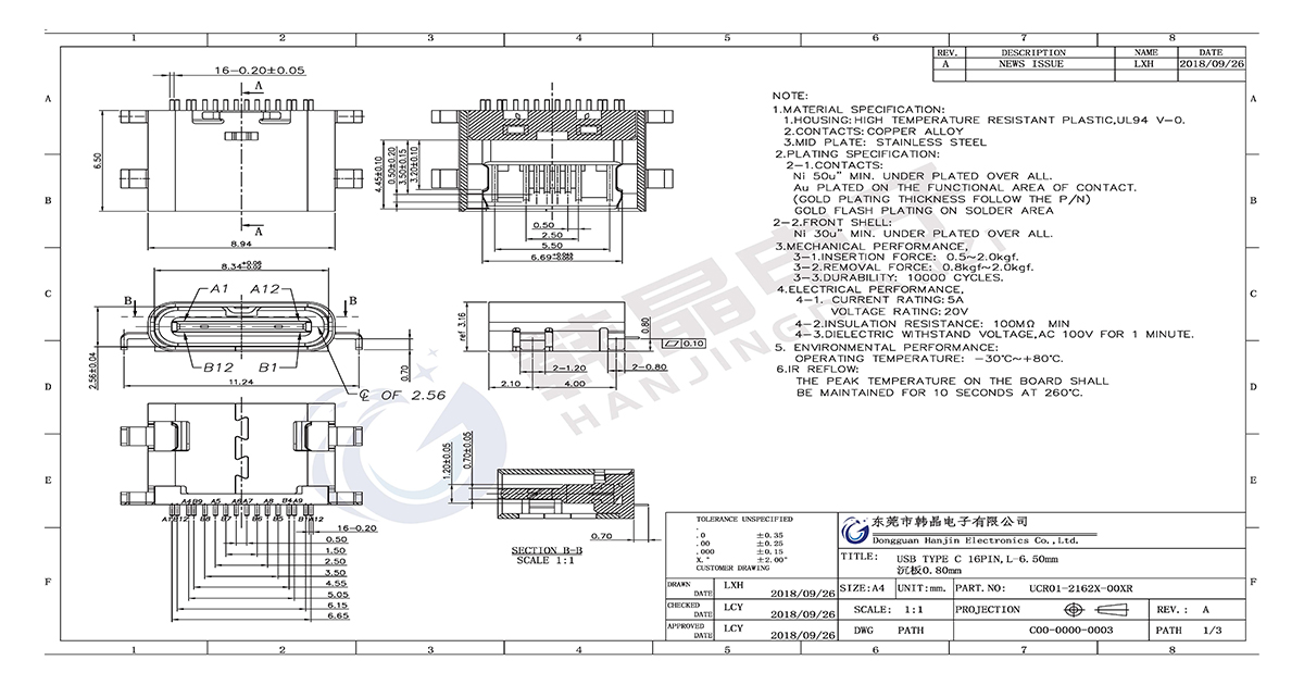 絕緣體材料: LCP,UL94V-0;COL0R;BLACK