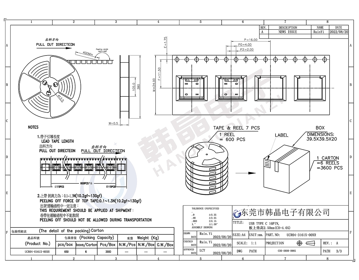 • TYPE C16PIN L-8.0mm板上型墊高2.50mmCH=4.05 型號(hào):UCR04-3161X-00XR