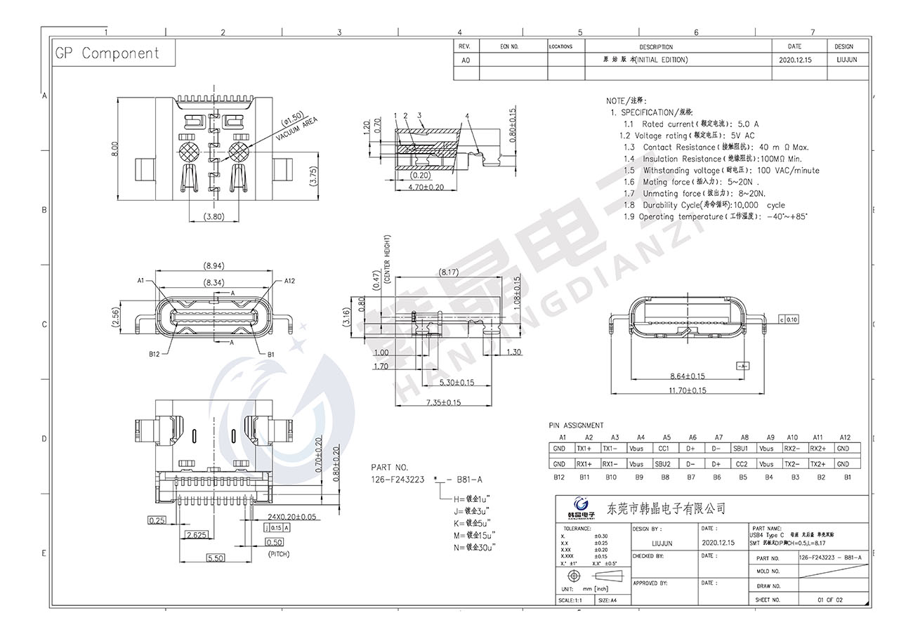 絕緣體材料: PA9T,UL94 V-0,BLACK