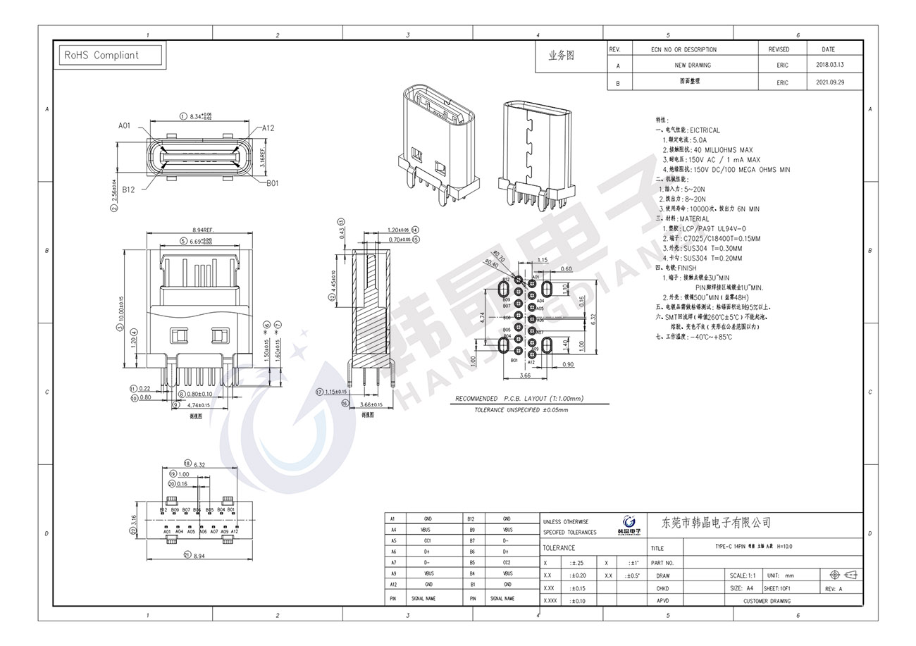 絕緣體材料: LCP, PA9T UL94 v-0