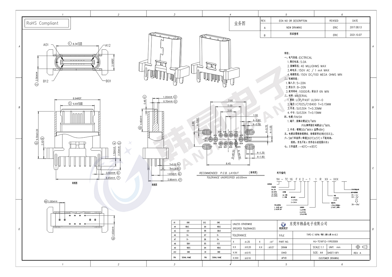 絕緣體材料: LCP, PA9T UL94 v-0