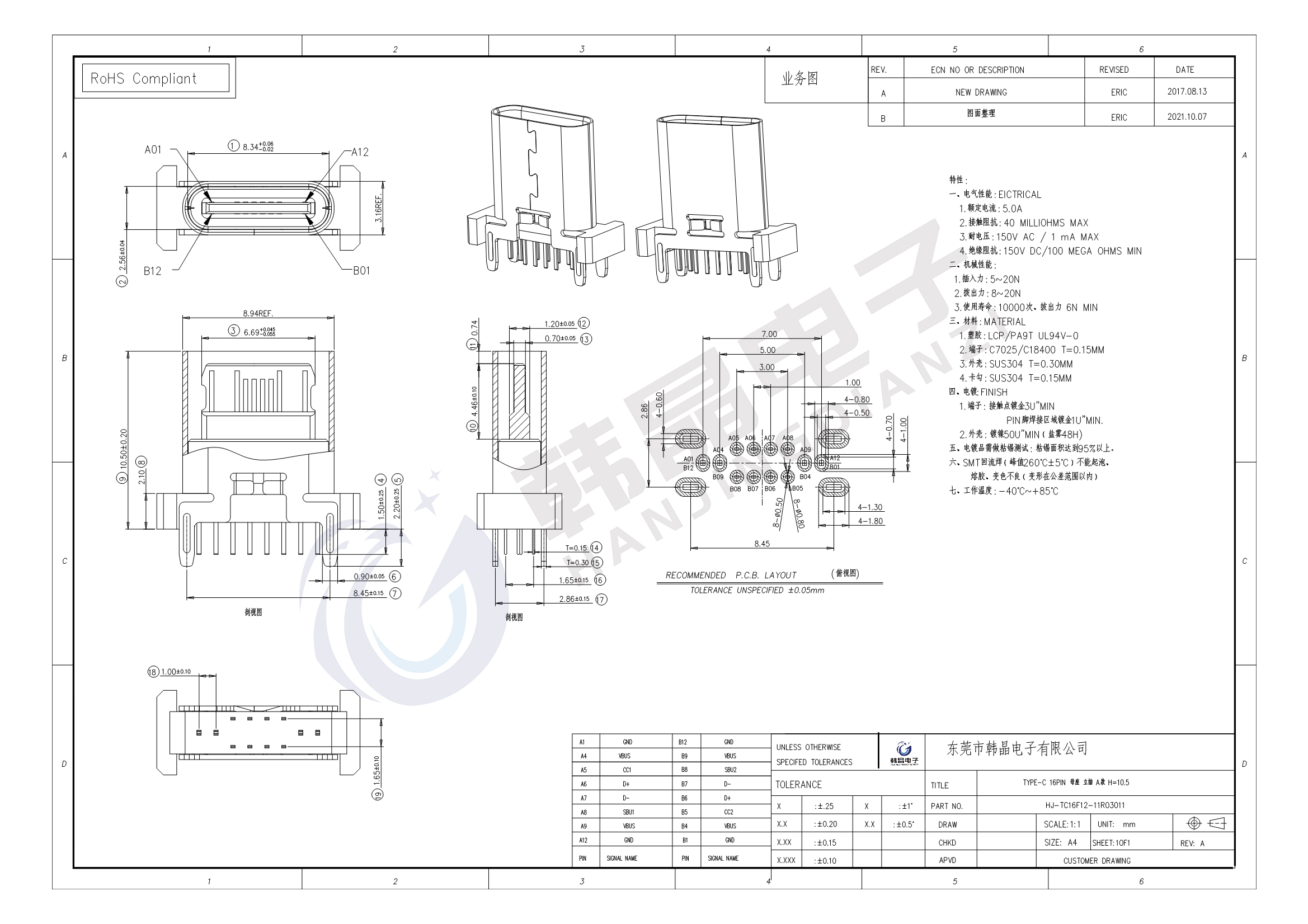 TYPE-C 16PIN 母座 立插 A款 H=10.5